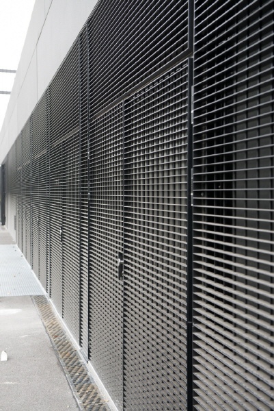 Durch den Einsatz des Werkstoffs Aluminium erhalten die Fassaden zahlreiche positive Eigenschaften: ein geringes Gewicht, eine hohe Korrosionsbeständigkeit, hohe Tragfestigkeit und eine leichte Verarbeitungsfähigkeit. Die rotec Fassadengitterroste können bis zu einer max. Rostgröße von 6000 x 1200 mm hergestellt werden. Zur Realisierung eines durchlaufenden Maschenbildes können die Fassadenroste ohne Randeinfassung hergestellt werden (Siehe Bilder Autohaus Volvo, Fassade).